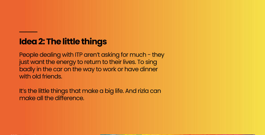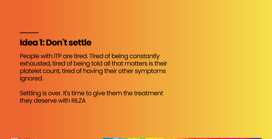 RILZA ConceptsLauren Schechtman, and I brought two great concepts to the table for RILZA, which helps people with ITP. The creative flow was incredible between the two of us.